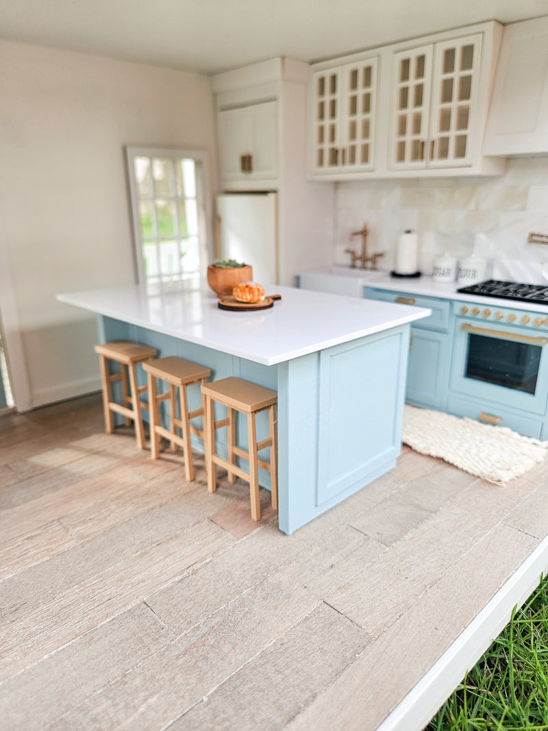 These bar stools pair perfectly with the kitchen island located here - https://seacrestminis.com/product/dollhouse-miniature-kitchen-island-2/