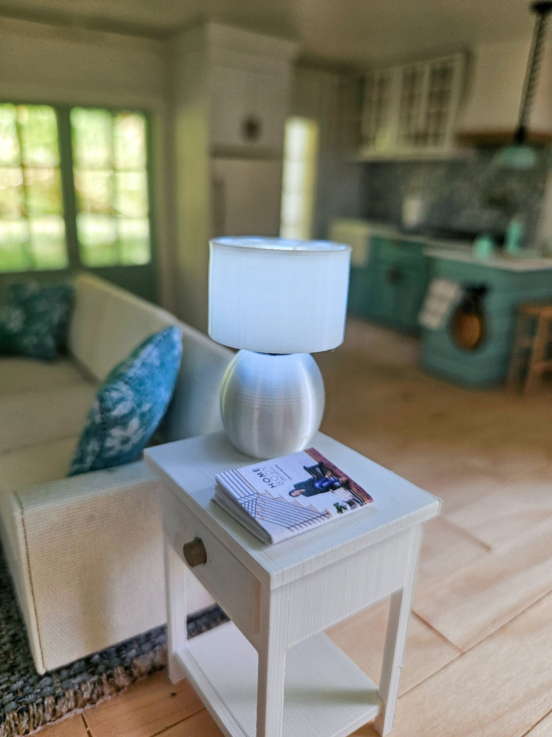 This adorable miniature lamp would look adorable in any dollhouse. All you have to do is twist the lamp shade to turn the bulb on. These lights would be the perfect addition for your dollhouse living room, bedroom, or office!