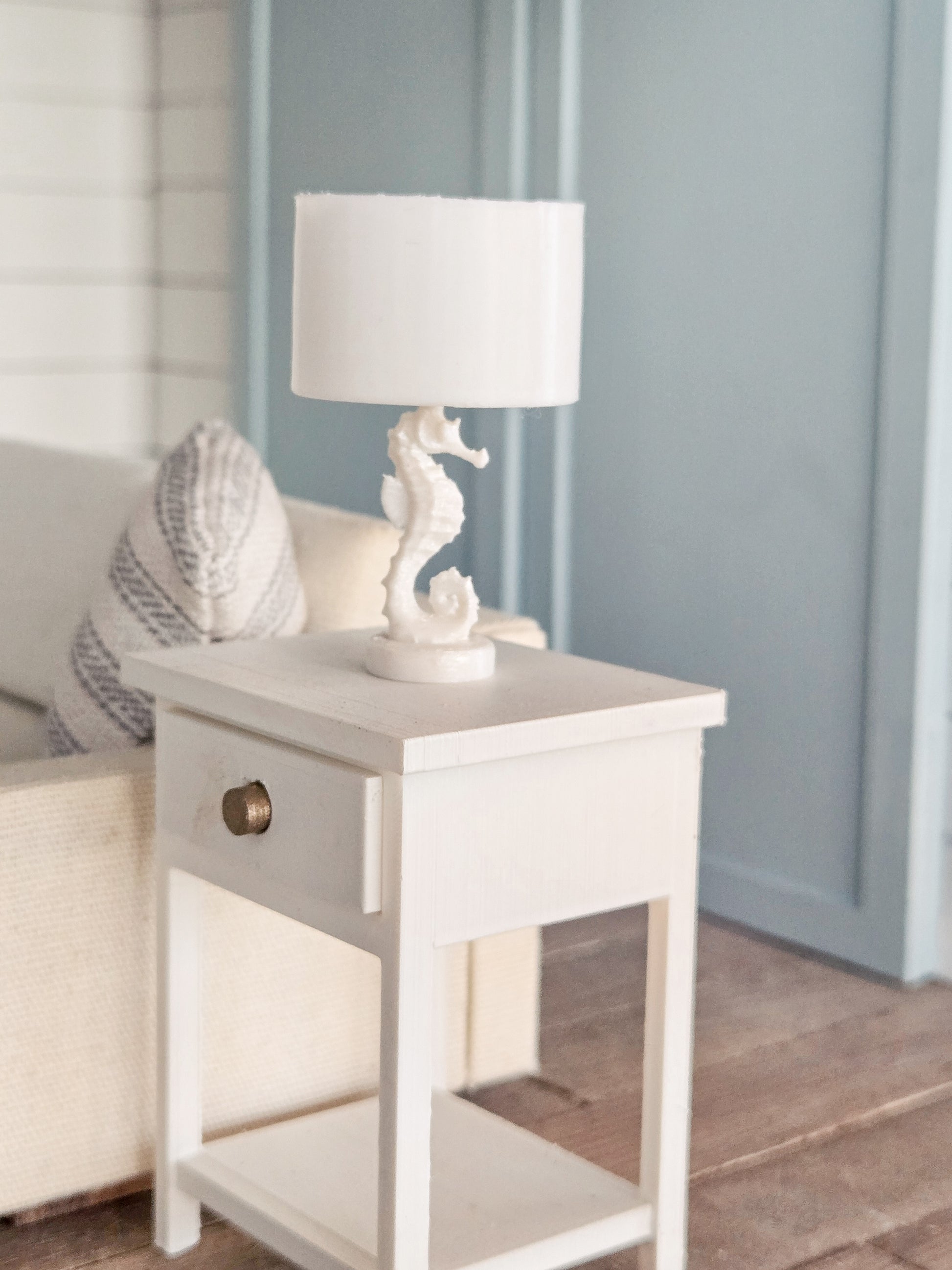 This adorable miniature seahorse lamp would look adorable in any dollhouse. All you have to do is touch the lampshade with the provided magnet to turn the bulb on. These lights would be the perfect addition for your dollhouse living room, bedroom, or office!